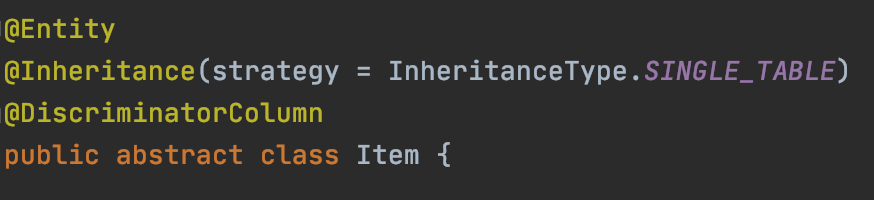 - @DiscriminatorValue("XXX") : DTYPE부분 도메인 이름 지정 가능