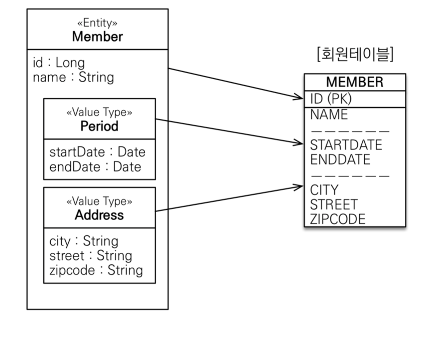 - 임베디드 타입을 사용해도 매핑되는 테이블은 똑같다.