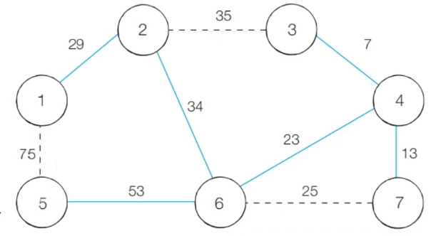 (여기서는 정렬을 수행했다고 가정하고 가장 비용이 적은 간선부터 선택할 것이다.)