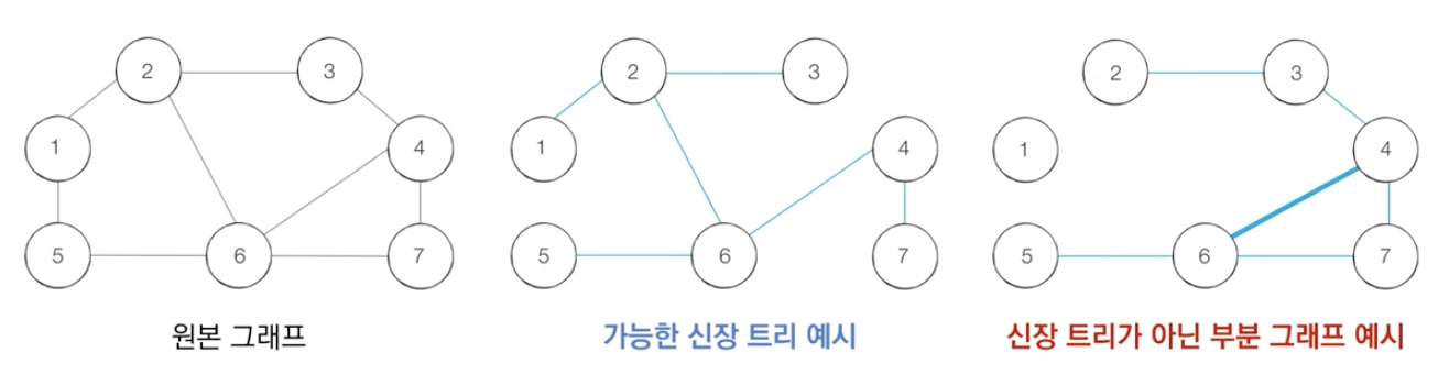 모든 노드가 포함되어 서로 연결되면서 사이클이 존재하지 않는 부분 그래프