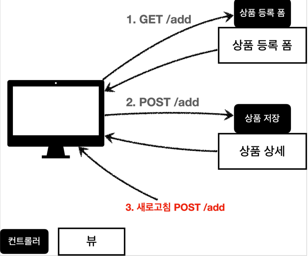 상품등록과 같은 POST 요청을 보내고 나서 Redirect 처리를 안해주면 새로고침 시 POST 요청이 또 나갈 수 있다.