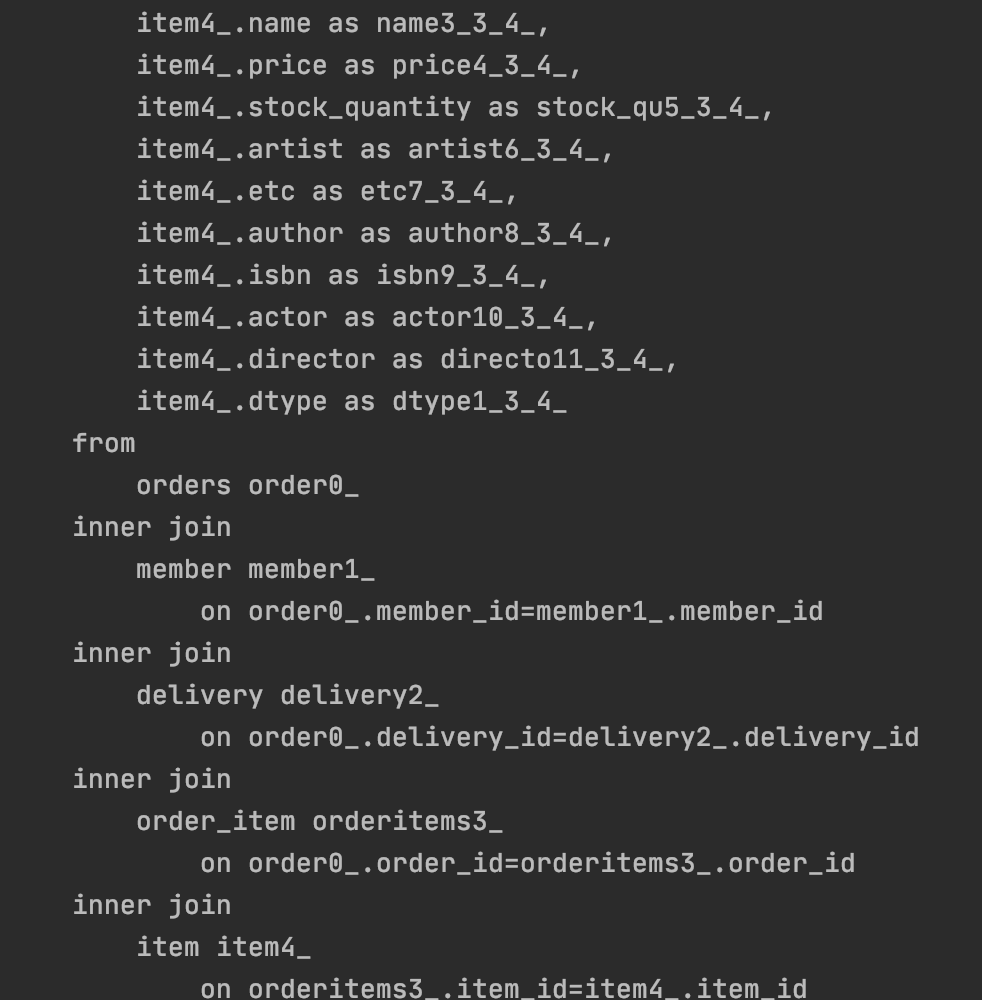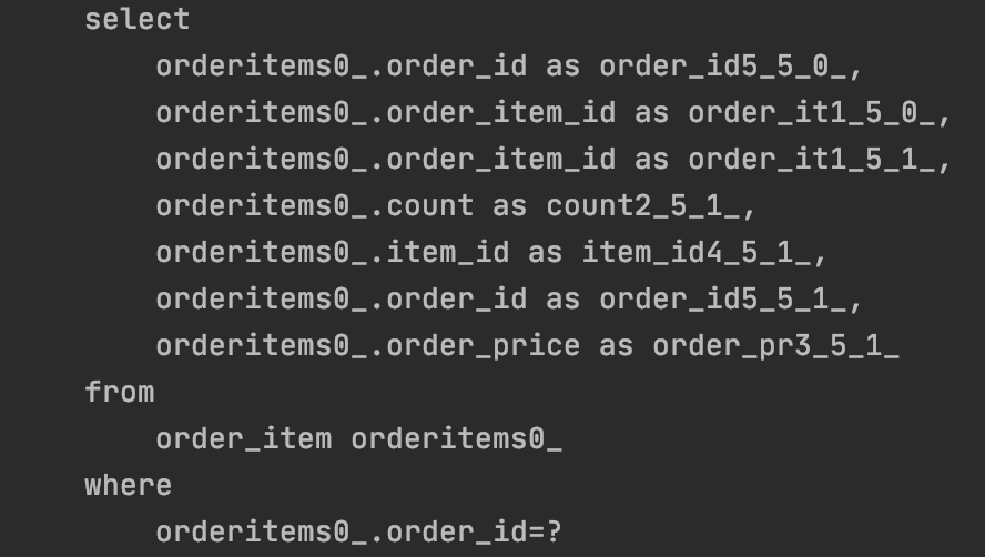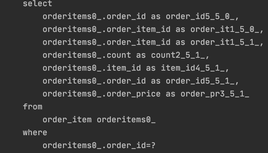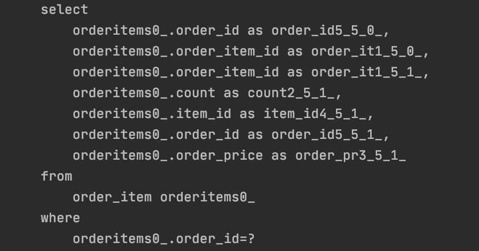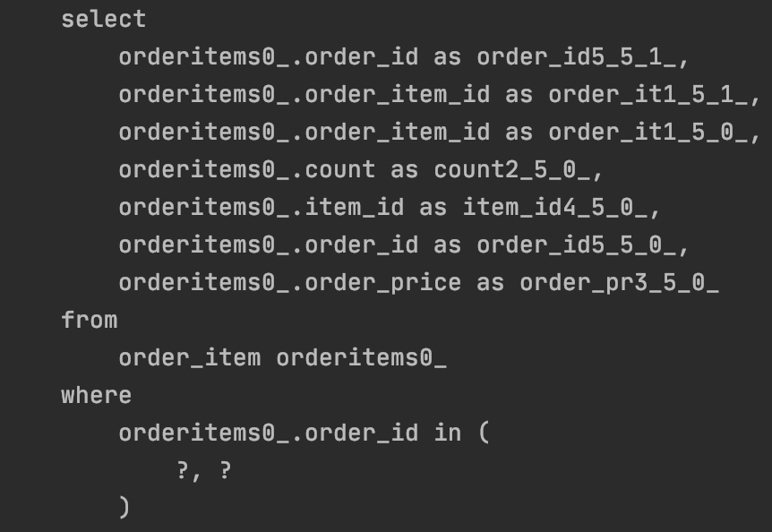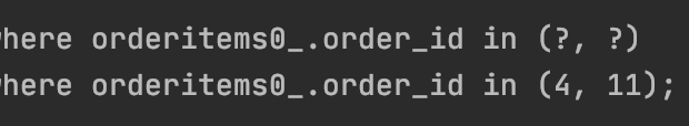 2번째 사진에 있는 orderItems를 가져오는 쿼리를 보면 뒤에 in 이 추가되어있다.