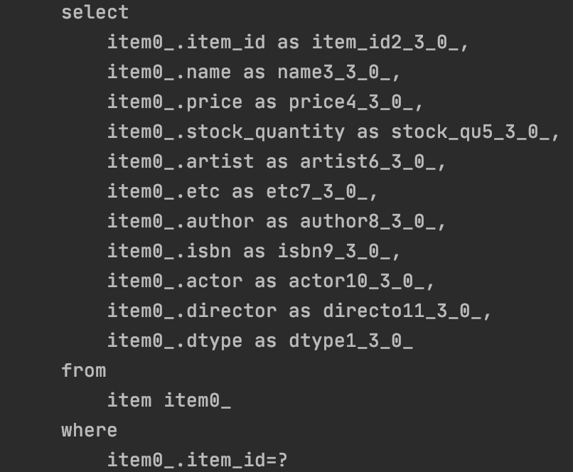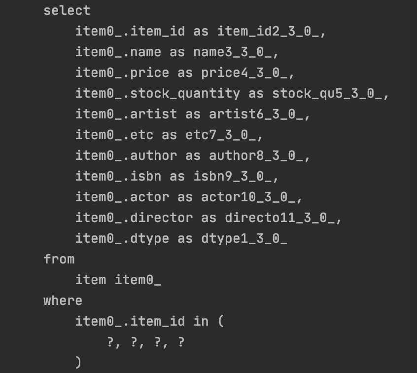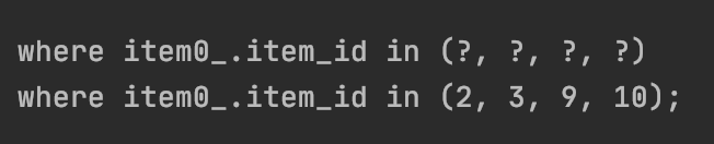 3번째 사진에 있는 item을 가져오는 쿼리에도 in 이 추가되어 있다.