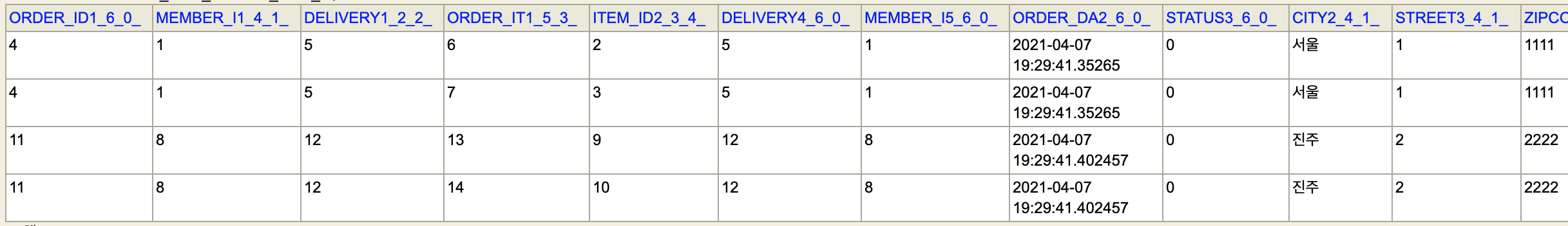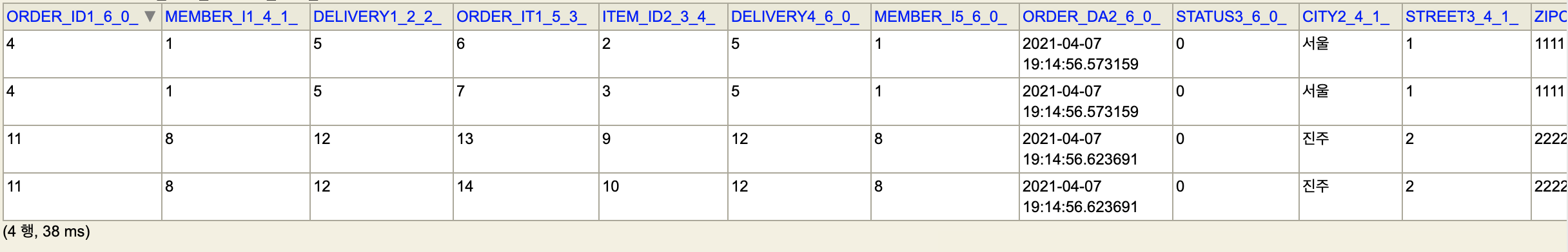 그래서 관계형 DB에서 준 데이터를 그대로 뿌려서 JSON에서도 Order가 4개가 나온 것이다.