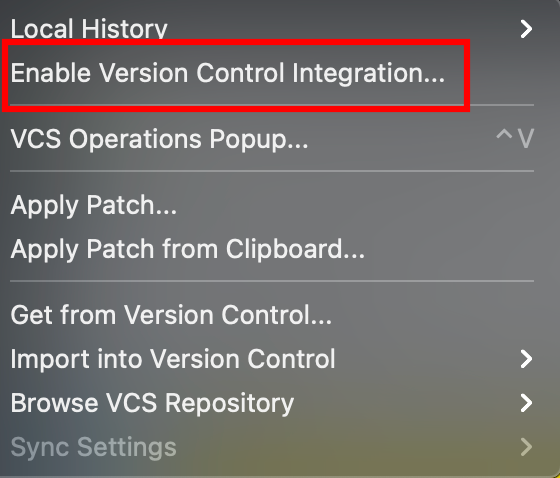 Enable Version Control Integeration을 누르면 기존에 쓰던 .git을 가져오고