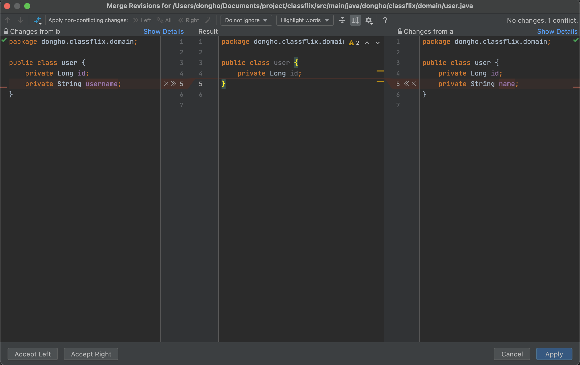 merge conflict 를 해결할때는 gui를 이용하는 것이 생산성이 좋을 것 같았다.