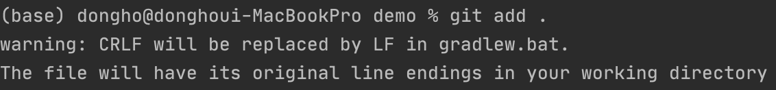 warning: CRLF will be replaced by LF in gradlew.bat. 문제가 발생한다.
