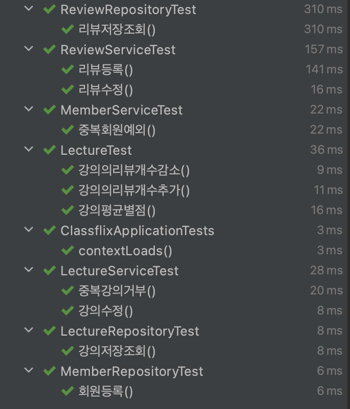 테스트 코드 실행 결과