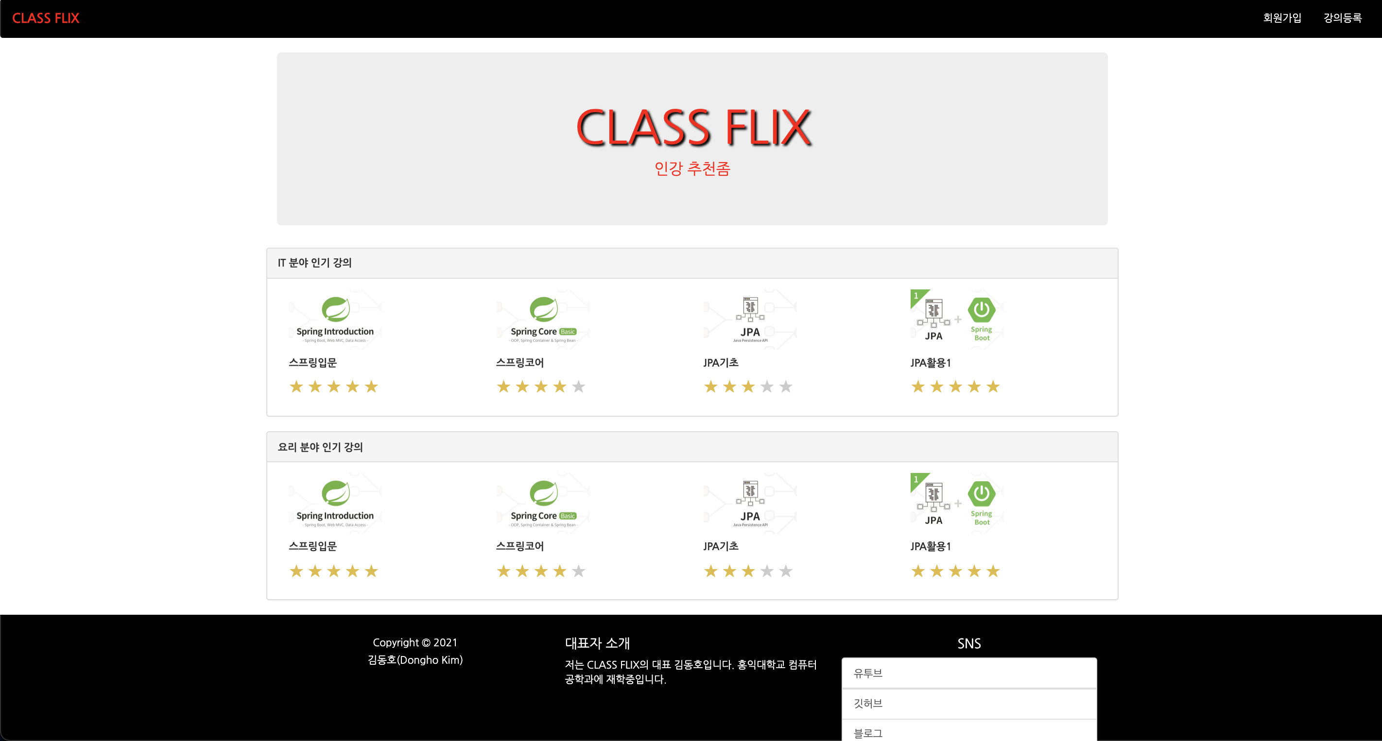 * 강의부분은 어떻게 구성되어야할지 미리 테스트 이미지와 데이터를 html 상에서 넣어놓았다.