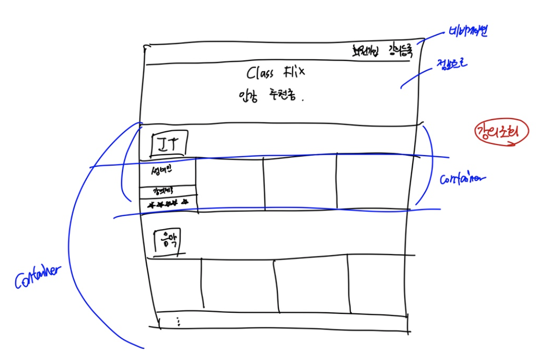 - NetFlix의 뷰 아이디어를 따왔다. 홈화면에서 category별 인터넷 강의를 바로 볼 수 있도록 한다.