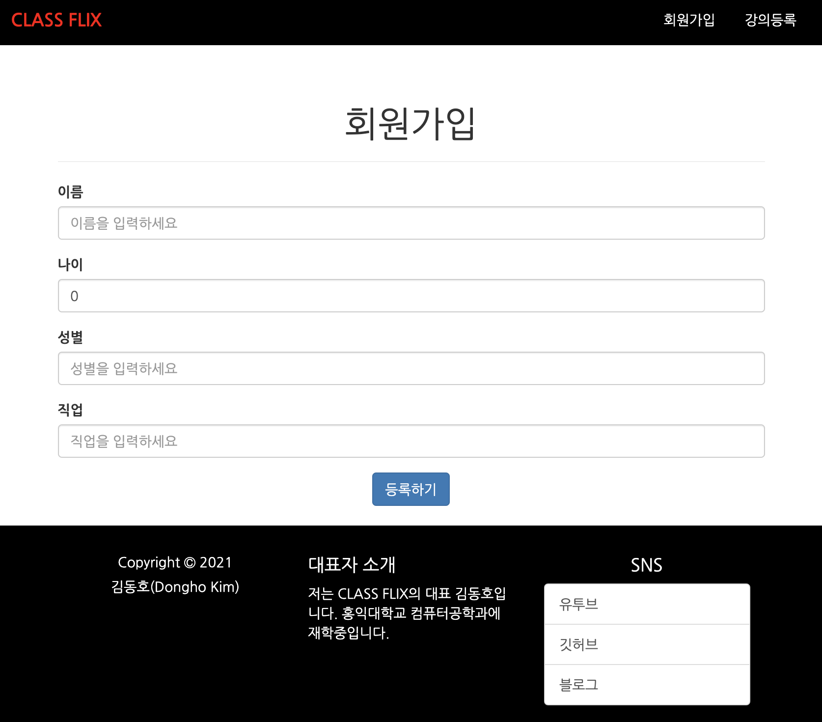 <div class="col-sm-4"><h4>대표자 소개</h4><p>저는 CLASS FLIX의 대표 김동호입니다. 홍익대학교 컴퓨터공학과에 재학중입니다.</p></div>