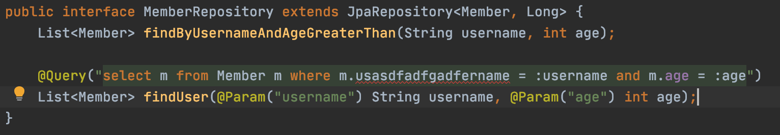 @Query("select m from Member m where m.username = :username and m.age = :age")