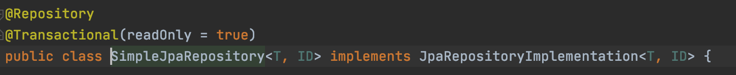 SimpleJpaRepository를 들어가보면 @Repository, @Transactional(readOnly = true)가 걸려있습니다.
