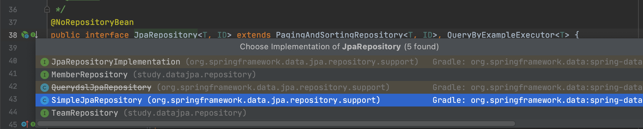 JpaRepository의 구현클래스 중에서 SimpleJpaRepository가 스프링 데이터 JPA 구현체 입니다.