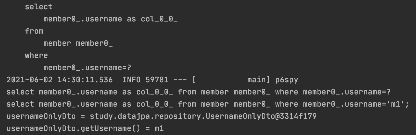 System.out.println("memberProjection.getUsername() = " + memberProjection.getUsername());