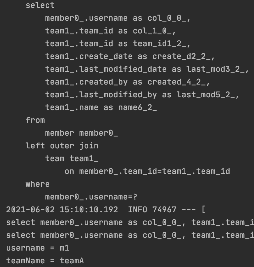 System.out.println("memberProjection.getTeamName() = " + memberProjection.getTeamName());