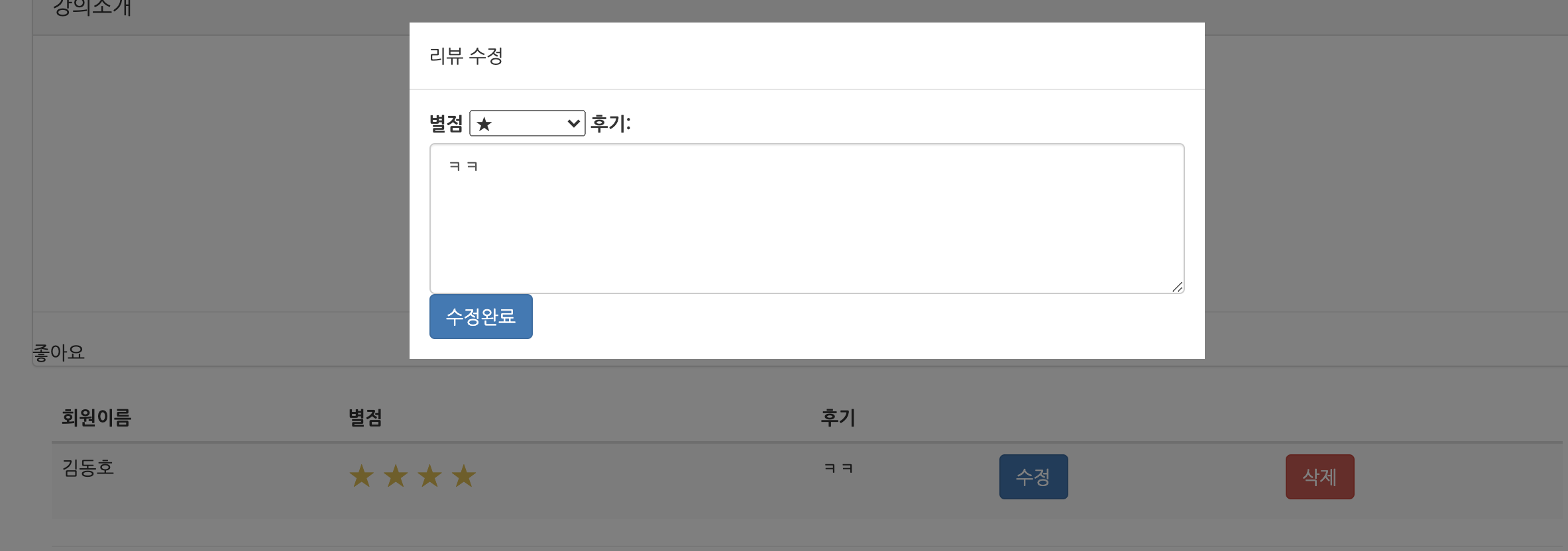 리뷰의 등록, 수정, 삭제가 다 잘 동작합니다.