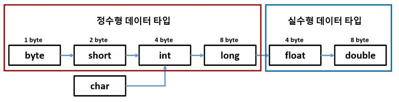 | 정수형 | byte, short, int, long |