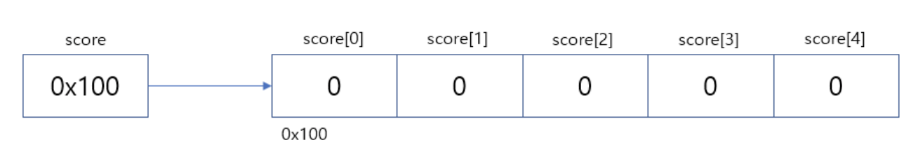 int형 배열 score를 선언, 단지 생성된 배열을 다루기 위한 참조변수를 위한 공간을 만든 것 뿐입니다.