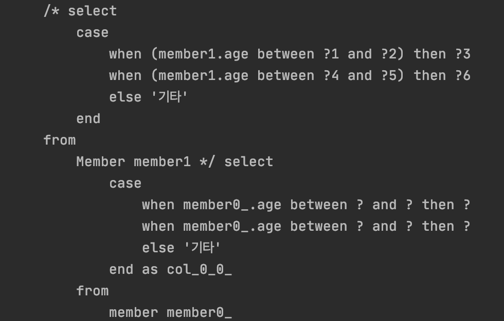 select 절에서 member.age.when.then으로 사용이 가능합니다.