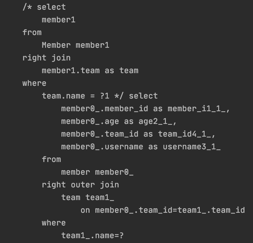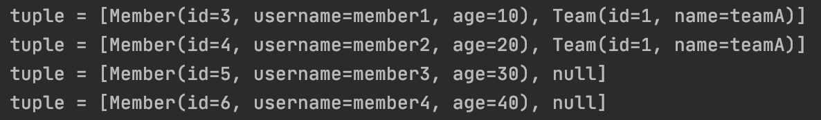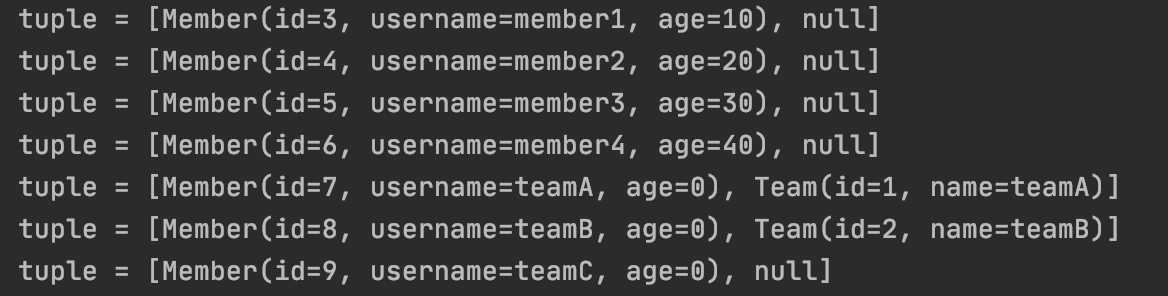 그래서 아래와같이 Member을 조회하면 Team은 조회되지 않습니다.