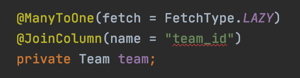 Member 엔티티에서 성능최적화를 위해 Team은 Lazy로 설정되어있습니다.
