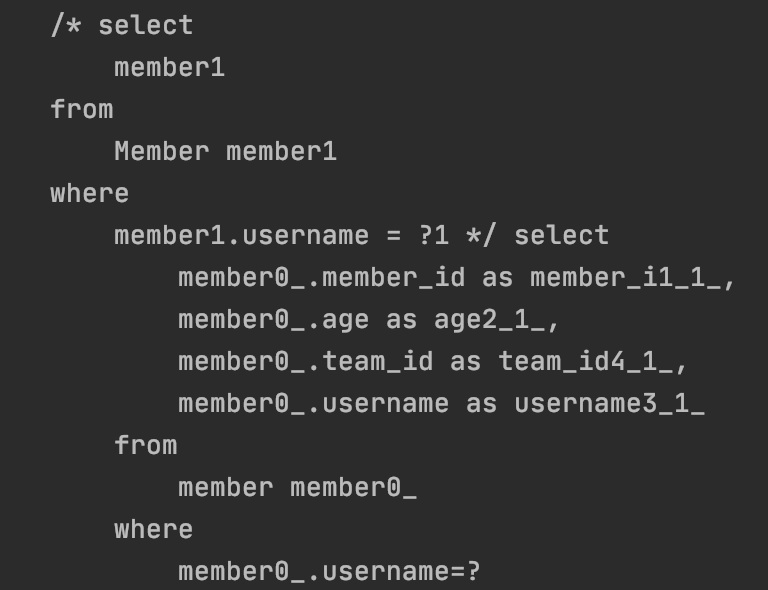 jpql : 만약 문법에서 오타가 발생시 컴파일 시점에 오류 발견이 불가능하고 런타임때 오류가 발생합니다.