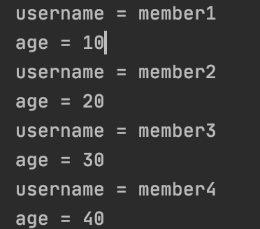 쿼리도 username, age만 나가는 것을 볼 수 있습니다.