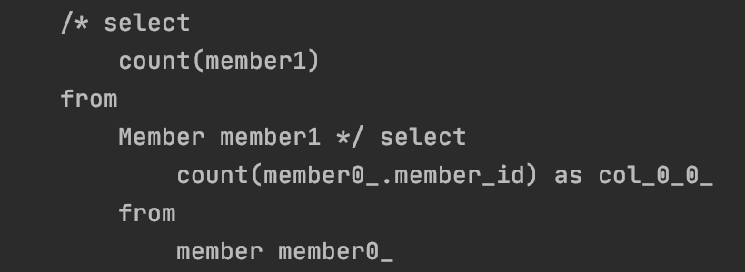 total count를 가져오는 쿼리와, 페이징 조건에 따라 member를 가져오는 쿼리를 볼 수 있습니다.