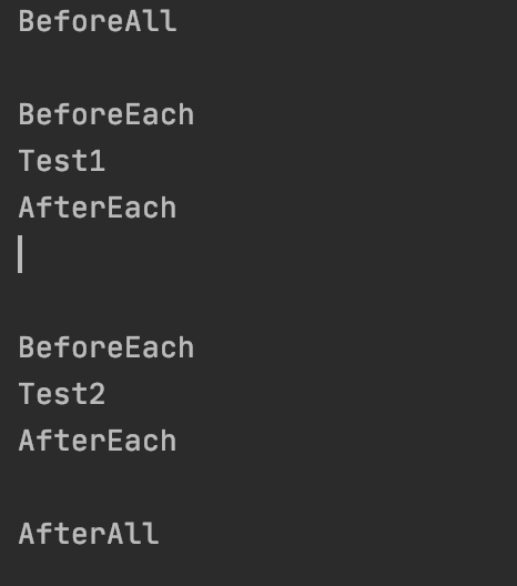 - @AfterAll : @Test 메소드들이 실행된 후에 실행
