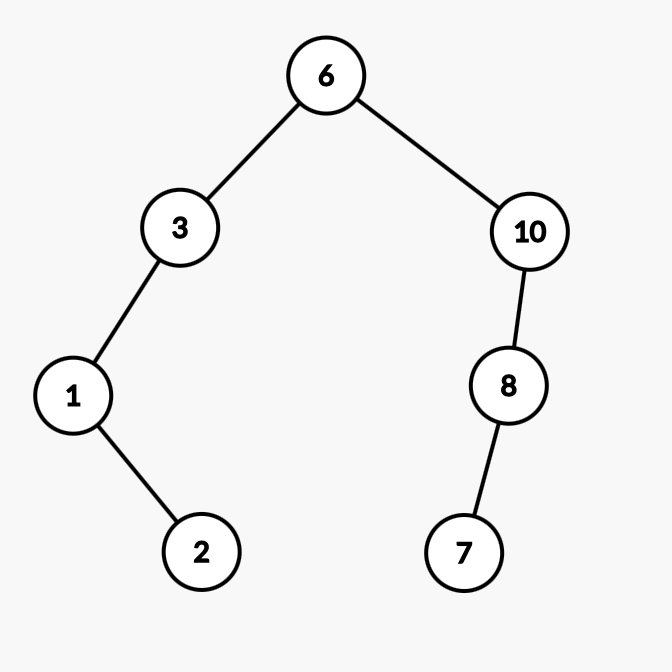 6 -> 3 -> 1 -> 2 -> 10 -> 8 -> 7 가 나와야 합니다.
