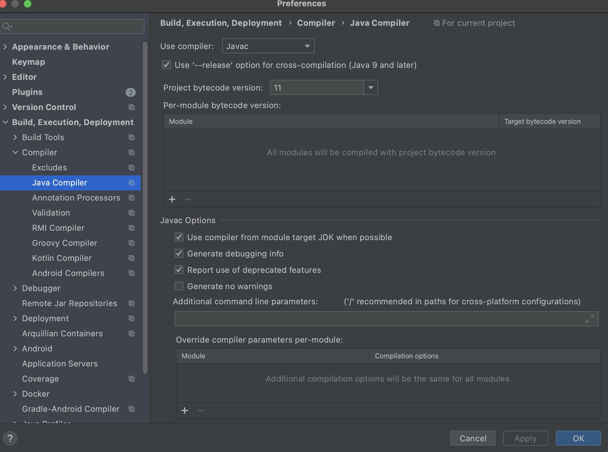- Java SE 11 = 55
