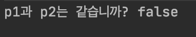 System.out.println("p1과 p2는 같습니까? " + p1.equals(p2));