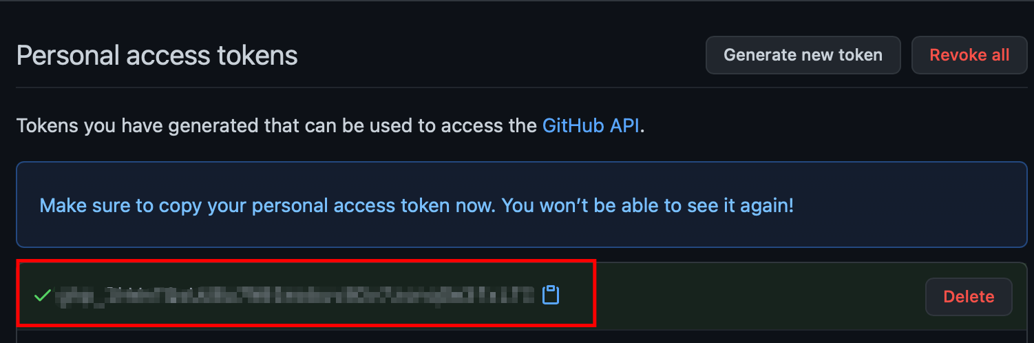 Generate new token 클릭