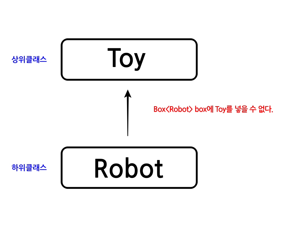 Toy를 상속받는 Robot가 있다고 생각을 해보면, Box<Robot> box에 Toy를 넣을 수 없습니다.