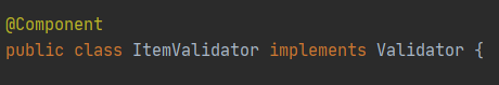 - ItemValidator를 @Component 를 주어 컴포넌트스캔의 대상으로 빈으로 관리하게 합니다.