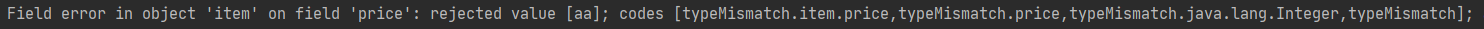 이제는 가격에 다른 타입을 입력시 우리가 정의해주었던 메세지가 출력됩니다.
