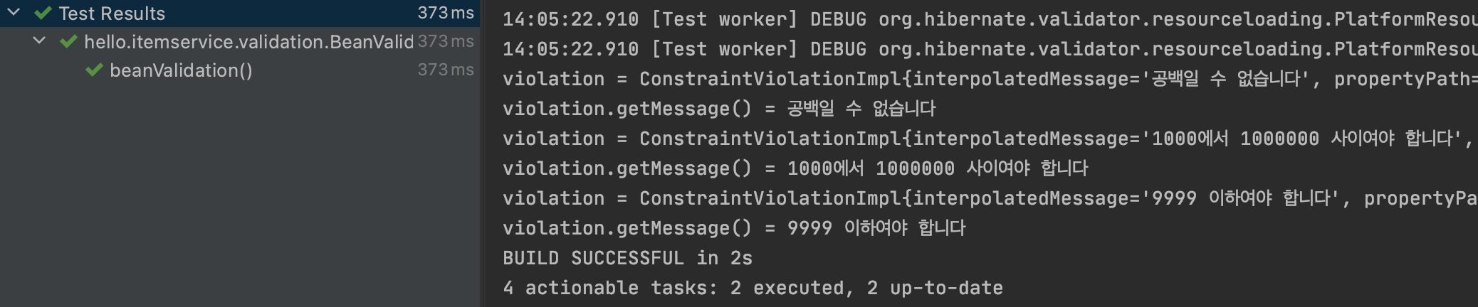 System.out.println("violation.getMessage() = " + violation.getMessage());