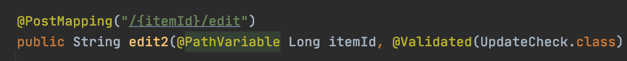 3. 검증하고 싶은 타겟객체에 @Validated 넣기, 바로 뒤에 파라미터 BindingResult 넣기