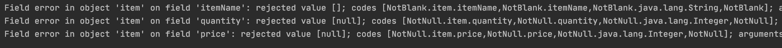 typeMismatch 때와 마찬가지로 이미 스프링에서는 에러 메세지를 찾기 위한 String 배열을 생성하지만 저희가 정의해주지 않았기 때문에 기본으로 정해진 메세지를 사용하고 있는 것입니다.