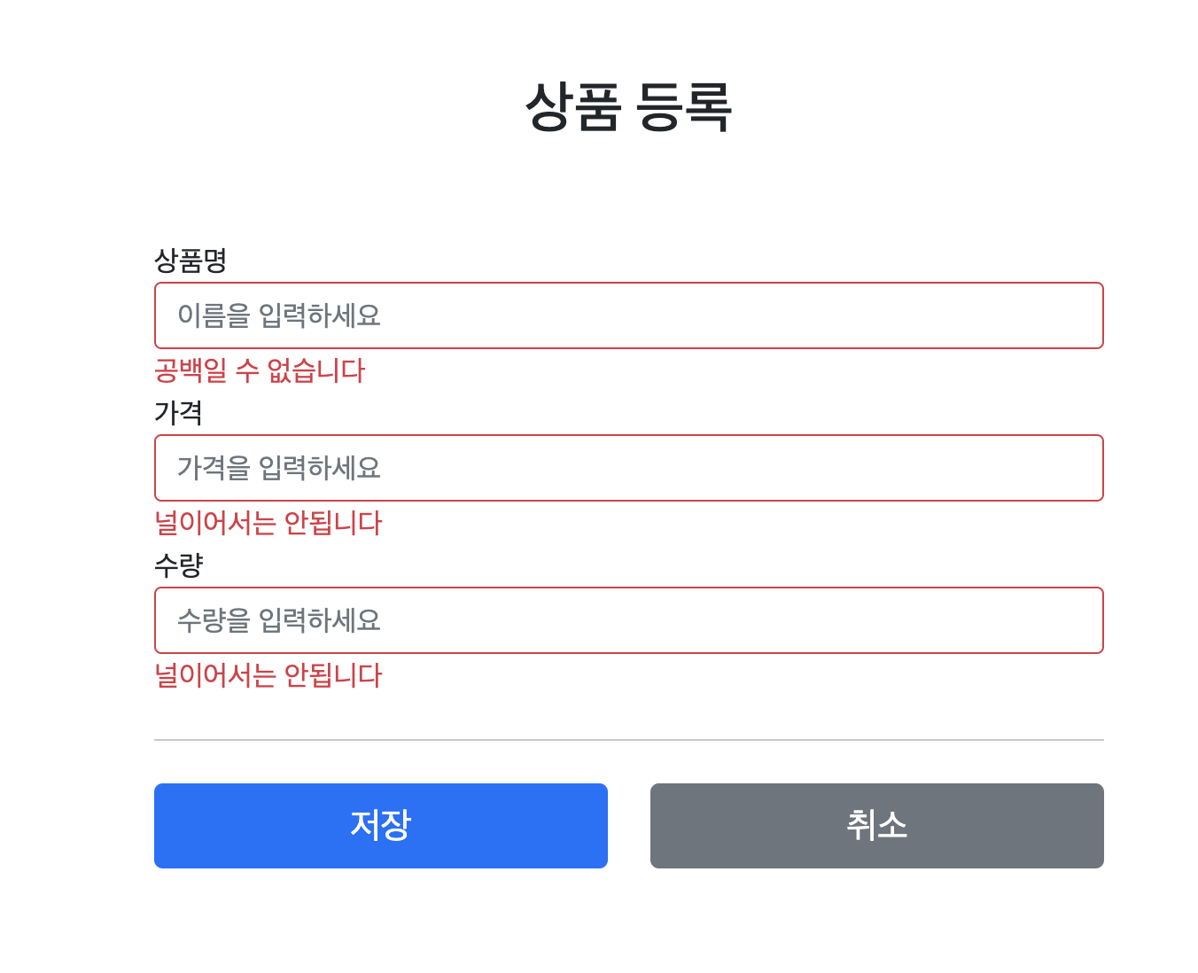 지금은 errors.properties에 오류메세지를 정의하지 않았는데도 알아서 오류메세지를 출력합니다.