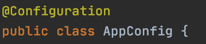 구성정보를 적기위해 @Configuration 어노테이션을 AppConfig 위에 적어주었다.