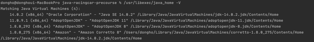 1.2 터미널 Java 버전 변경 (설정 되어있으시면 넘어가도 됩니다.)