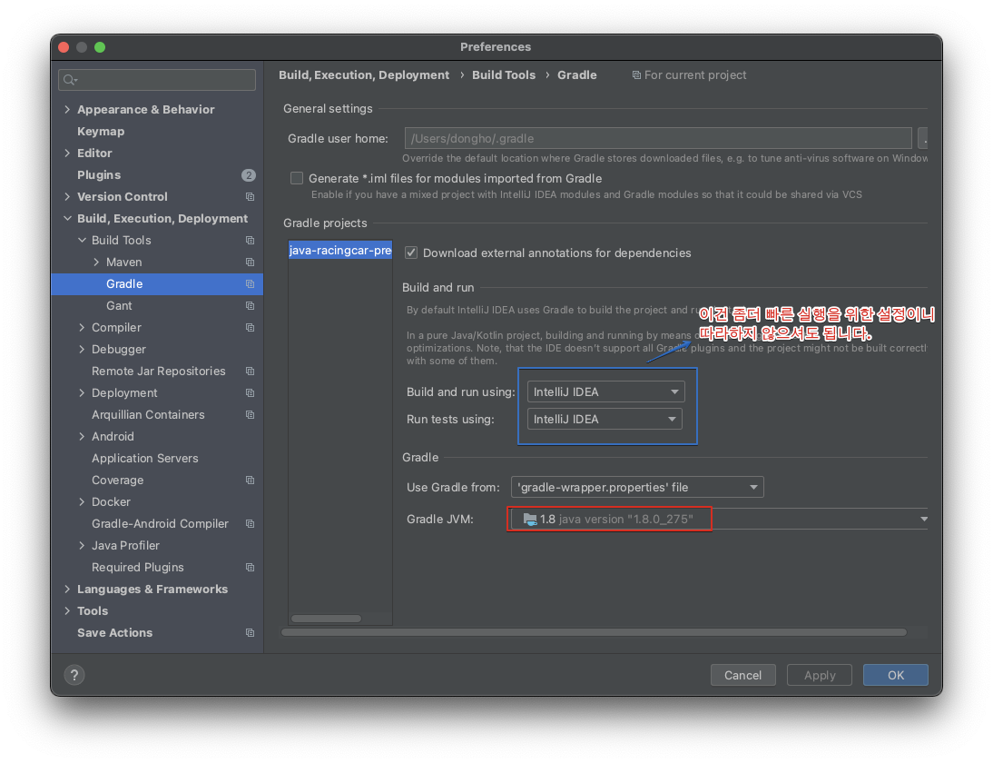 이 설정을 해주는 이유는 우테코의 gradlew 테스트를 터미널에서 통과하기 위한 목적이 있고, 이렇게 안해주면 프로젝트를 다시 열때 다른 버전으로 열리는 경우도 있더라구요.