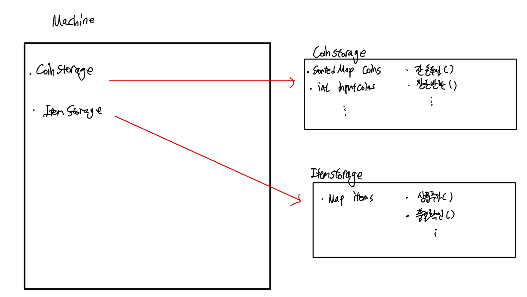 그래서 Machine에서 가지고 있던 Coin과 Item관련 자료구조들을 각자 클래스로 분리해주었습니다.