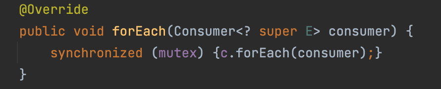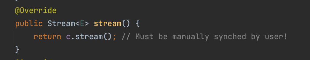 추가로, Collections.java에서 forEach에는 synchronized가 붙어있지만 stream()에는 붙어있지 않습니다.