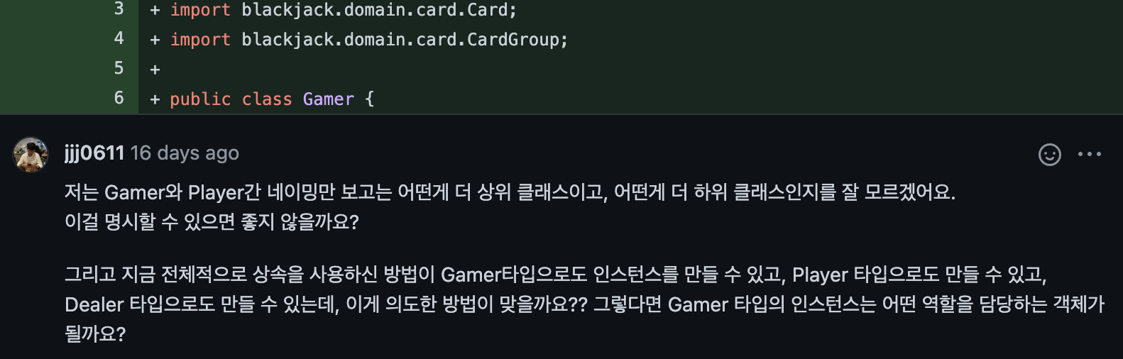 Gamer 클래스를 Player, Dealer가 상속받고 있었습니다.