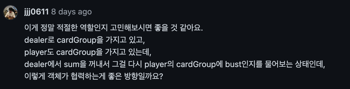 이 피드백을 기점으로 "객체에게 메세지를 보내라" 라는 의미를 제대로 이해했습니다.