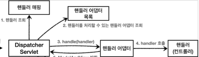 - Dispatcher Servlet에서 전반적인 요청을 처리한다. (핸들러 매핑후에 바로 실행하는 것이 아닌 Dispatcher Servlet이 매핑된 핸들러를 받고 어댑터를 찾고 실행시킴)