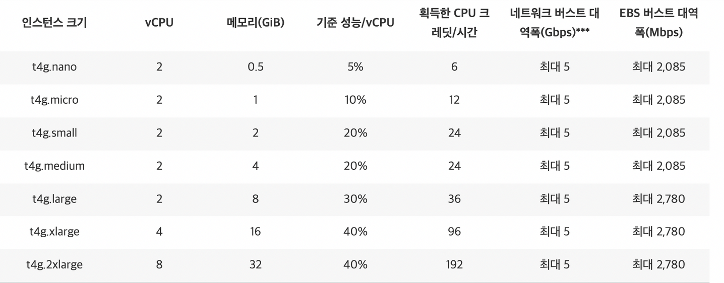 현재 제가 서비스에 사용하고있는 t4g.micro의 사양은 아래와 같습니다.